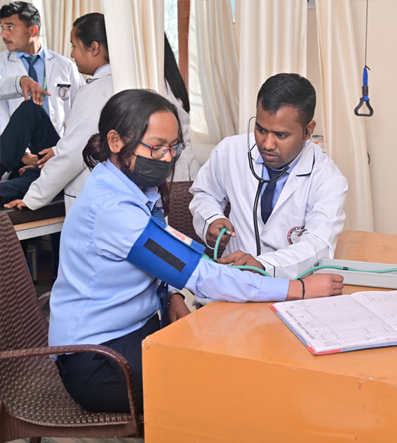 Amid this evolving trend, our Diploma Program in General Nursing & Midwifery aims to train health professionals who can express advanced assistance, educational expertise, and preventive skills in response to the health problems of the population. The art and science of nursing promote this profession as an evolving art and science, directed at human health and wellbeing. Through our three-year-long program, we are transforming young enthusiasts into nurses who are confident enough to combine the highest level of scientific knowledge and technological skills. The program encompasses classroom teaching, simulation-based learning, supervised clinical practice, field visits, community-based health programs, vocational training, and internship program through a multi-dimensional approach.